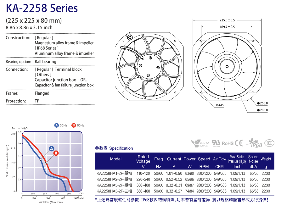 KA2258HA2B/IP68 SERIES 255×255×80mm