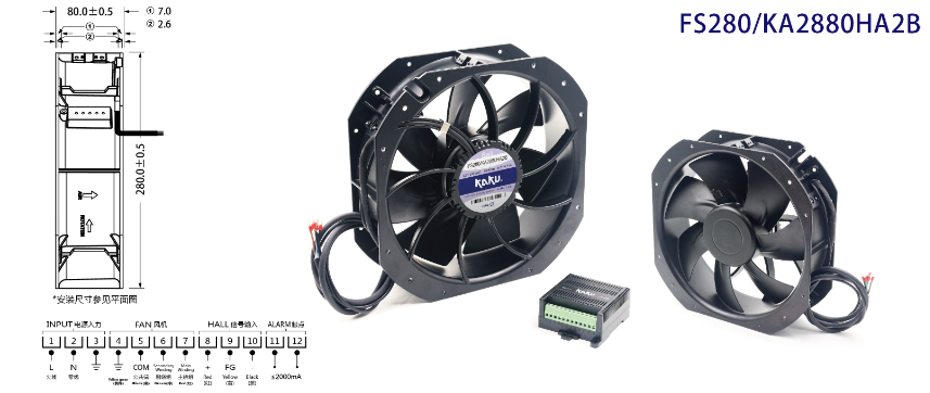 臺灣卡固 KAKU 軸流風扇 FS280/KA2880HA2B SERIES 280×280×80mm